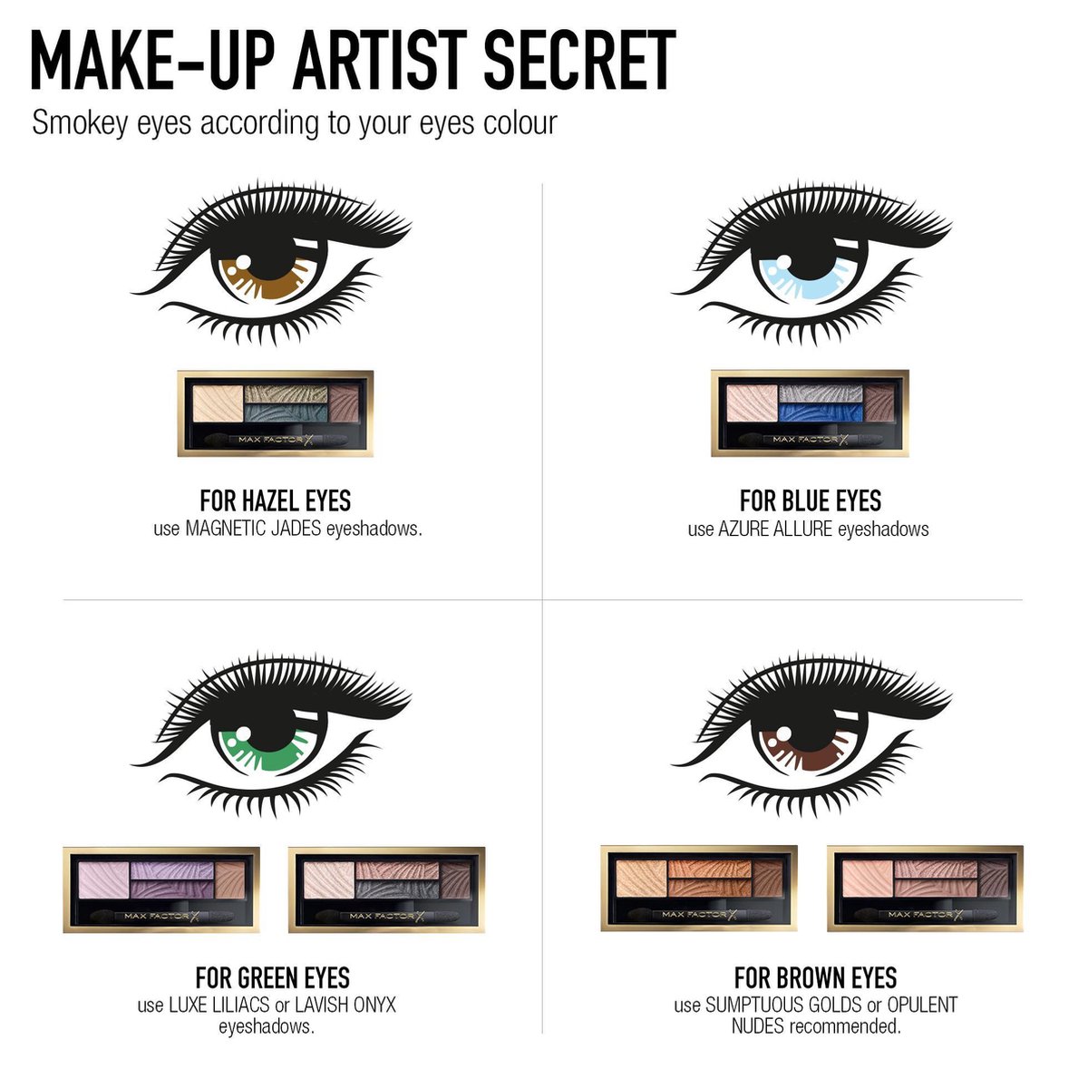 Max Factor Smokey Eye Drama Kit. Oogschaduweffect: Smoothing, Kleurgroep: Bruin, Kleurnaam: Lavish Onyx. Hoeveelheid: 1,8 g. Applicatortype: Spons