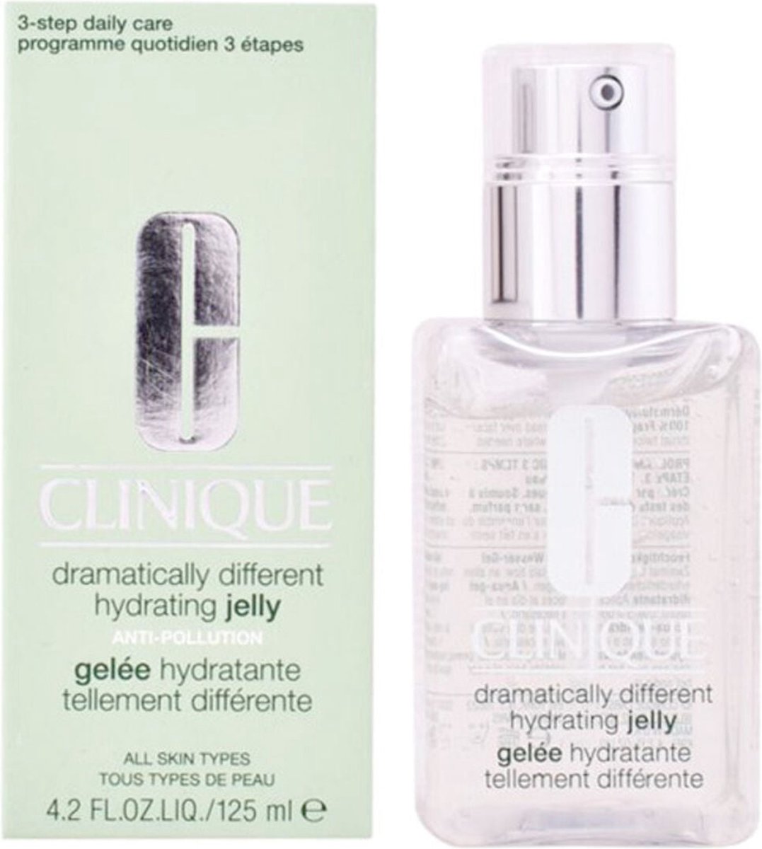 Dramatically Different Hydrating Jelly sluit het goede vocht af en filtert het slechte uit. Dit product van Clinique versterkt de vochtbarrière van de huid en verbetert de veerkracht. De unieke water-jelly-structuur voelt fris aan, dringt snel door en de olievrije formule is niet kleverig en laat geen residu achter. De huid is glad, sterk en gezond met een zuivere, schone gloed. Bewezen resultaten; het maakt de huid 87% minder kwetsbaar voor vervuiling * * In-vitro-testen op huidmodellen. De Clean Shield Technology ™ is geformuleerd met een vochtbarrière-mengsel van zonnebloempittencake, gerstextract en komkommerfruit-extract om de huidbarrière te versterken, de veerkracht te verbeteren en de vochtniveaus van de huid in balans te houden. Hyaluronzuur fungeert als een natuurlijke vochtmagneet / vochtinbrenger.
