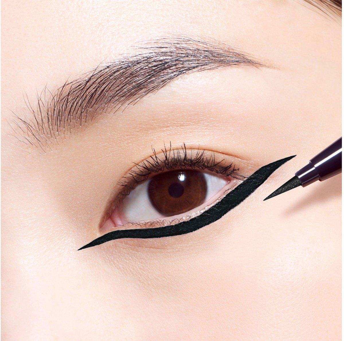 Een hybride applicator die de soepelheid van een kwast combineert met de precisie van een vilten punt. Voor een gemakkelijke, perfecte en onmiddellijk nauwkeurige lijn