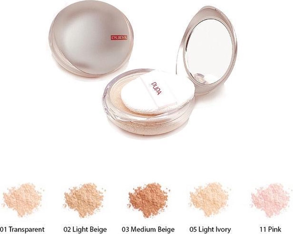 Losse poeder. Wordt gebruikt om de foundation af te poederen.