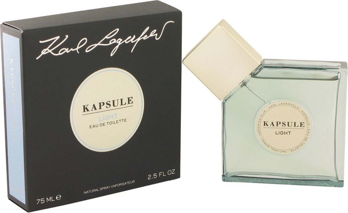 Kapsule Light door Karl Lagerfield. Dit is een fris en bloemige geur voor zowel mannen als vrouwen. Het bevat bittere sinaasappal, jasmijn, nootmuskaat, kruidnagel en muskus.